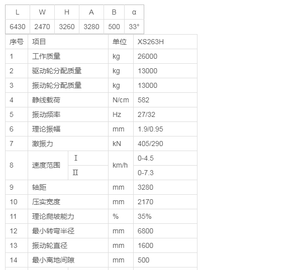 XS263H振動壓路機是有徐工集團工程機械股份有限公司自主研發的一款高效節能超重型機械驅動單鋼輪振動壓路機。該產品總體參數匹配合理,運用上柴三階段8D發動機、液壓阻尼控制技術、靜液壓傳動技術,提升了操縱舒適性;運用“三心合一”技術,優化傳動系統,使壓實性能和效率得到有效提升;采用四級制動,且配備氣頂油末端制動系統,保證整機安全可靠。