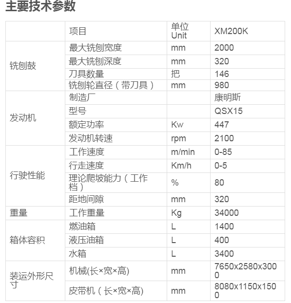 XM200K路面銑刨機是瀝青混凝土路面養護施工機械,主要用于公路、城鎮道路、機場、貨場、停車場等瀝青混凝土面層的開挖翻新。可以高效低清除路面癰包、油浪、網紋、車轍等;亦可開挖路面坑槽及溝槽;還可用于水泥路面的拉毛及面層錯臺的銑平。該設備工作效率高,施工工藝劍達,銑刨深度易于控制,操作方便靈活,機動性能好,銑刨的舊料能直接回收利用,可廣泛地用于瀝青路面的維修翻新養護施工之中。
